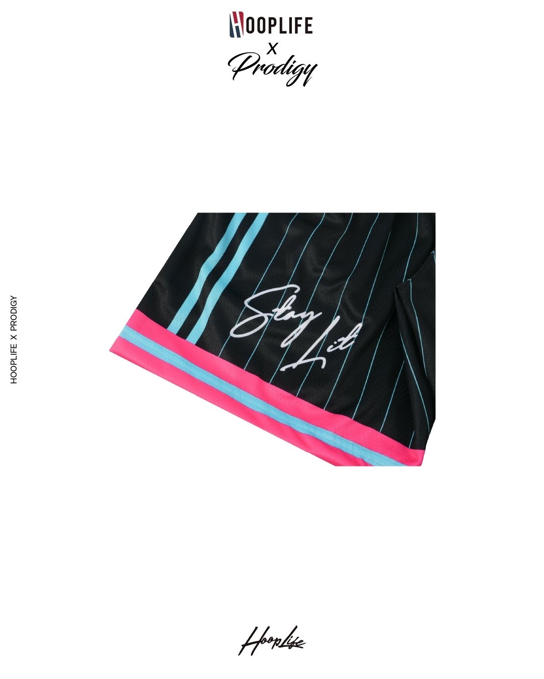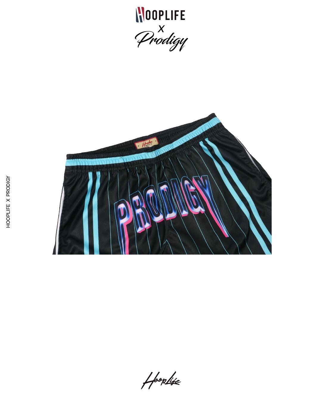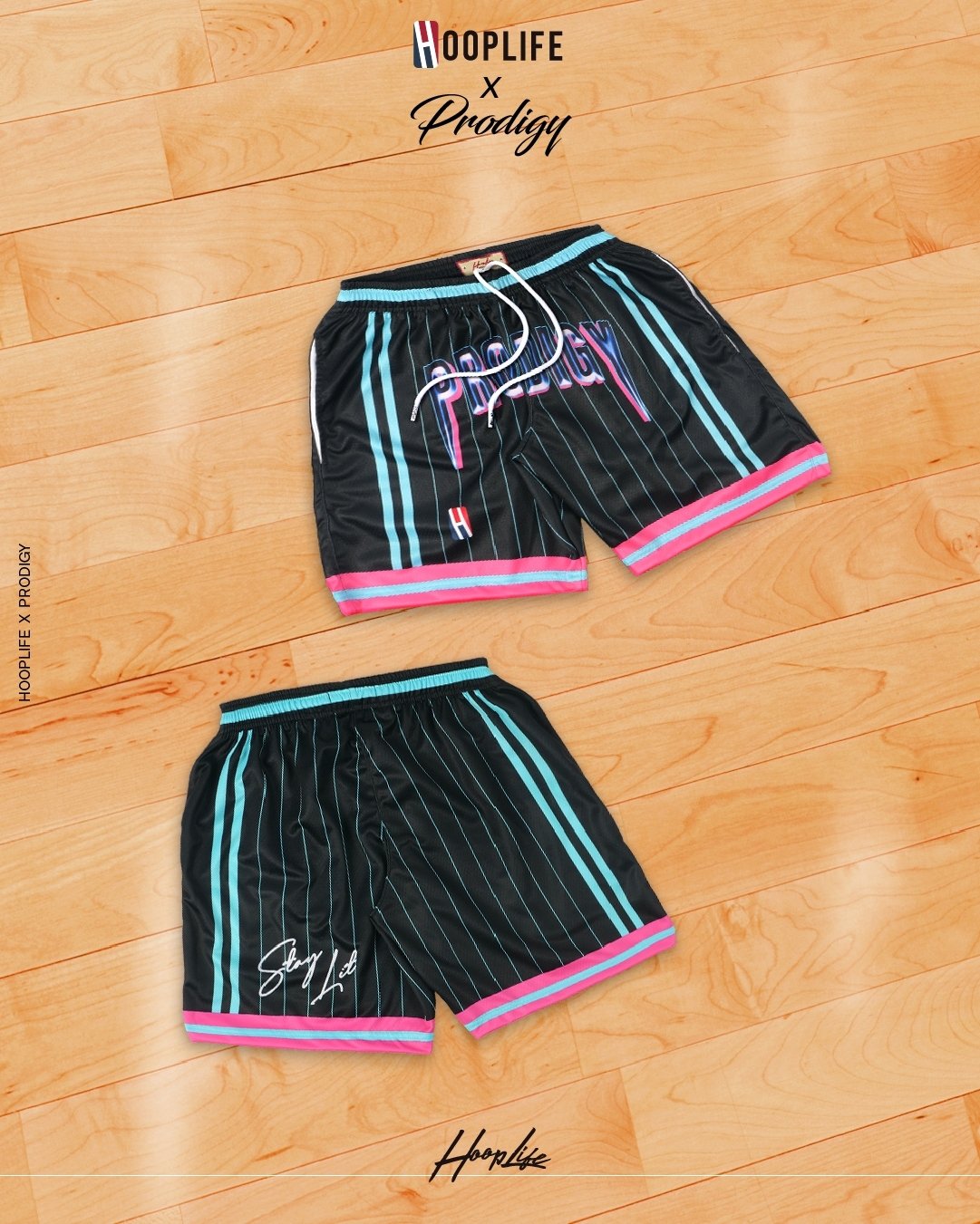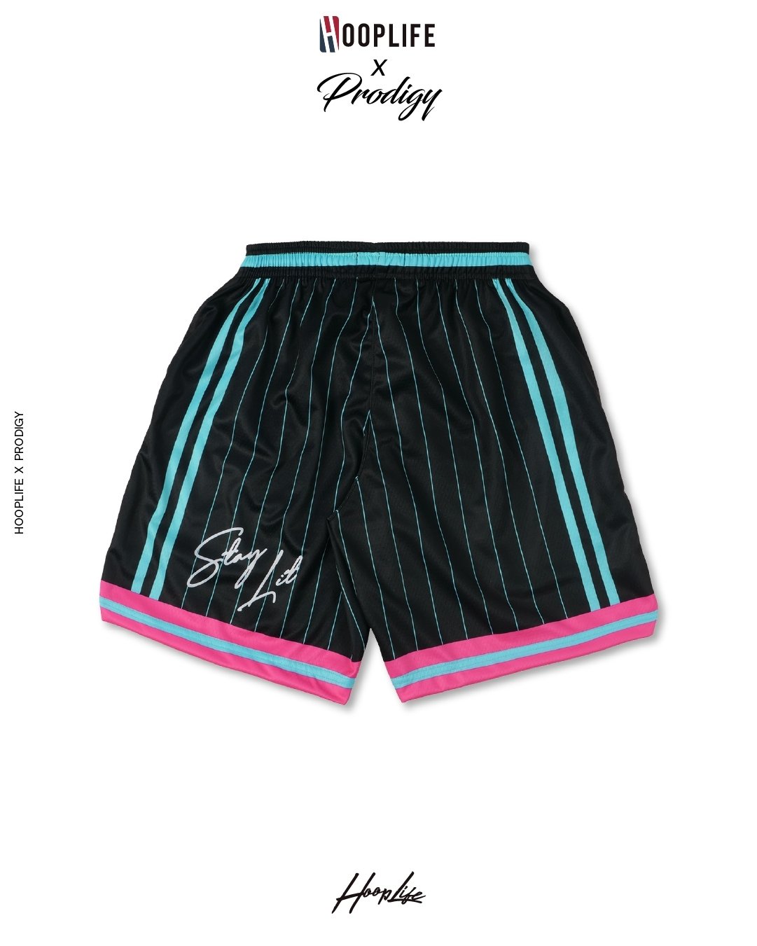 Prodigy Miami ice shorts vibrant ice pink and blue with the prodigy pin stripe